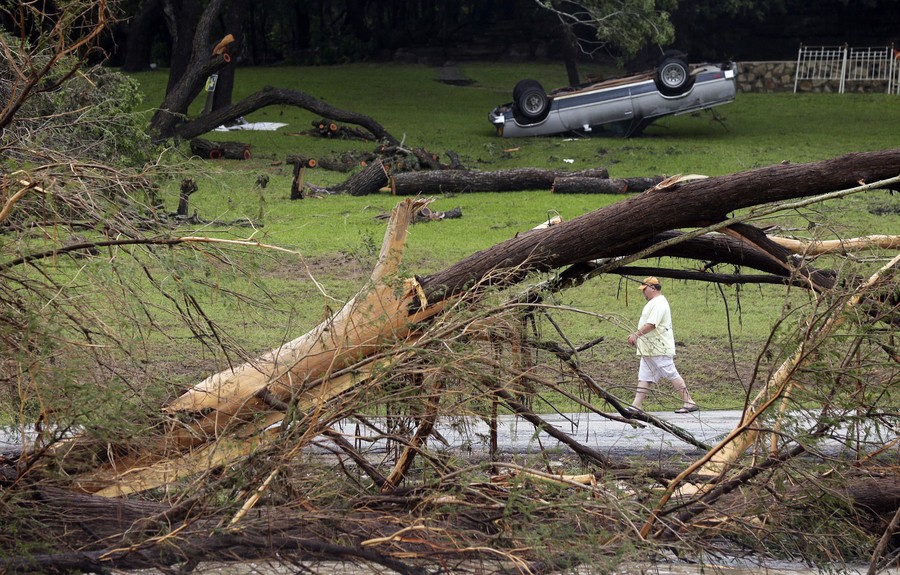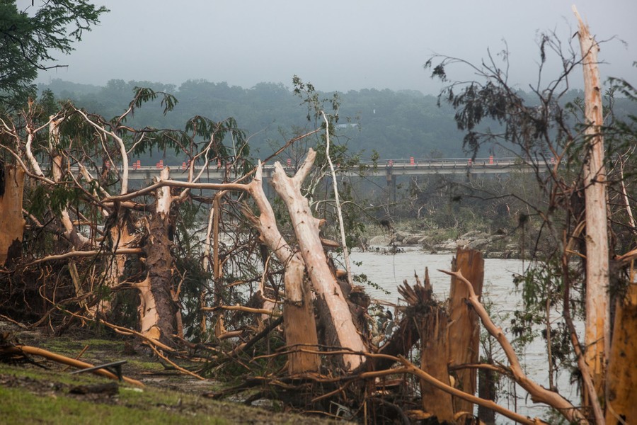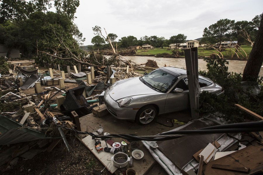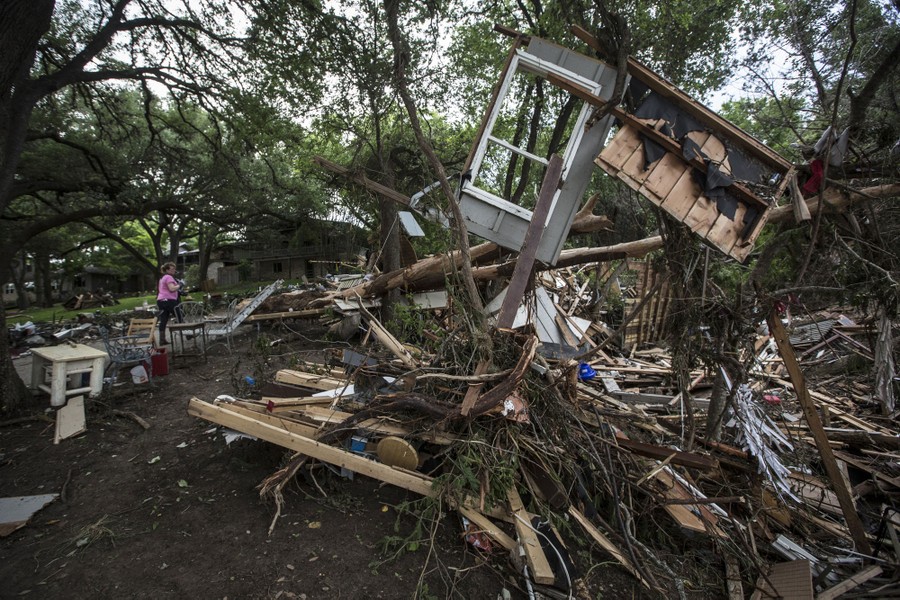 Read moreAmy Gilmour, a volunteer from San Antonio, Texas, walks past a pile of debris, which included parts of destroyed homes, that amassed when the Blanco River flooded during the Memorial Day weekend rains in Wimberley, Texas, on May 26, 2015. #