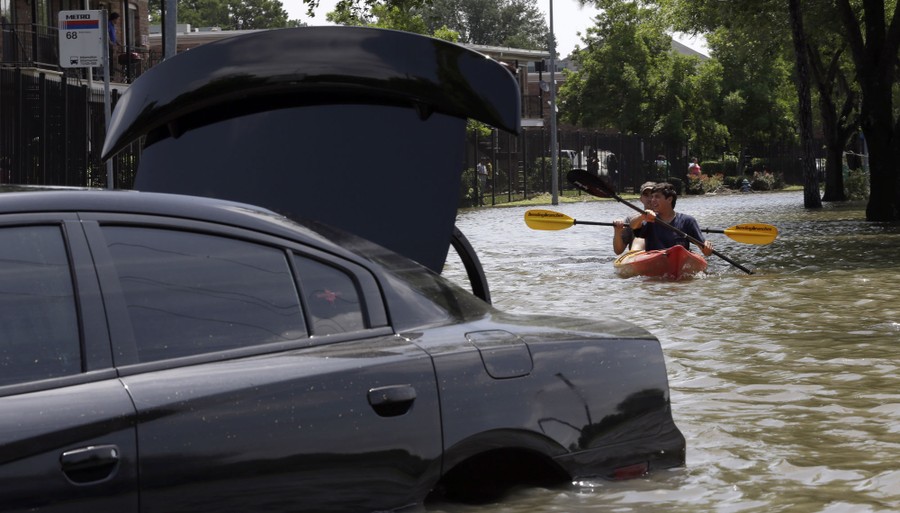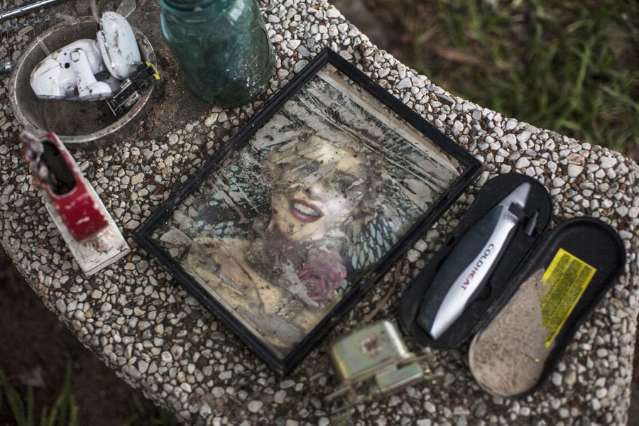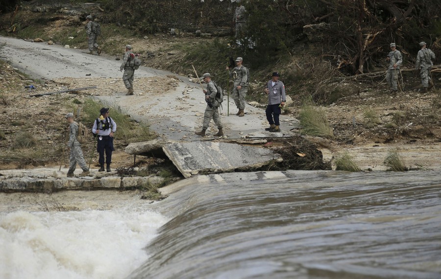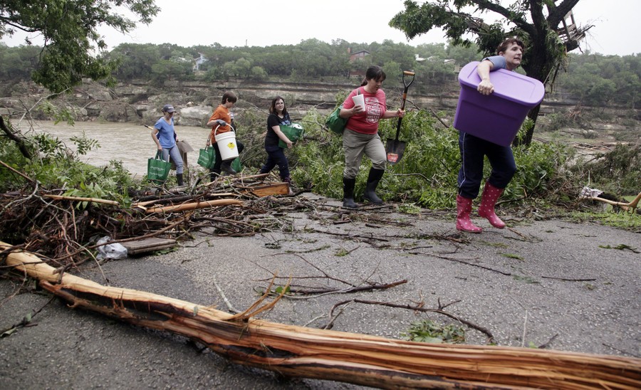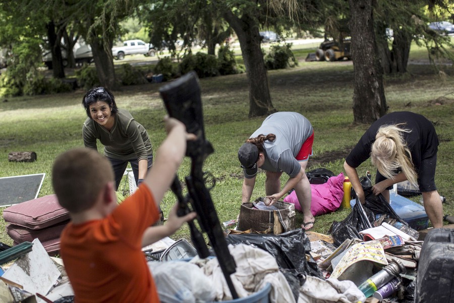 Read moreSonia Porter (left) reacts to Devin Sadler, 9, picking up a waterlogged rifle during clean-up efforts at John and Ruth Hansen's flood damaged home in San Marcos, Texas, on May 26, 2015. #