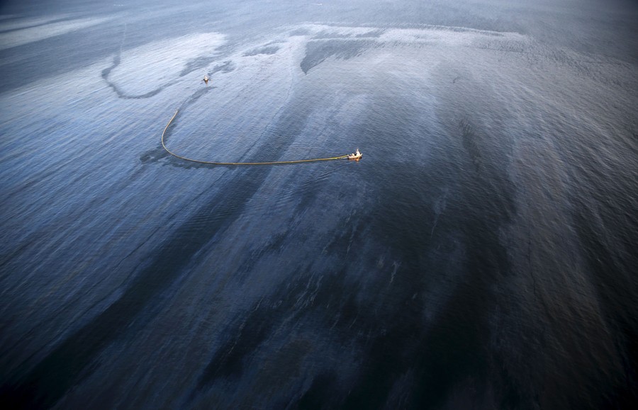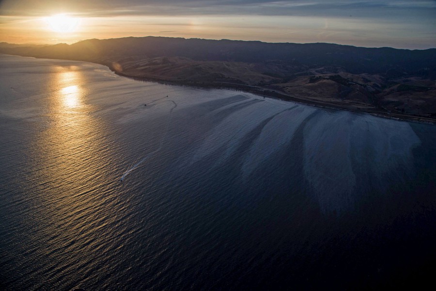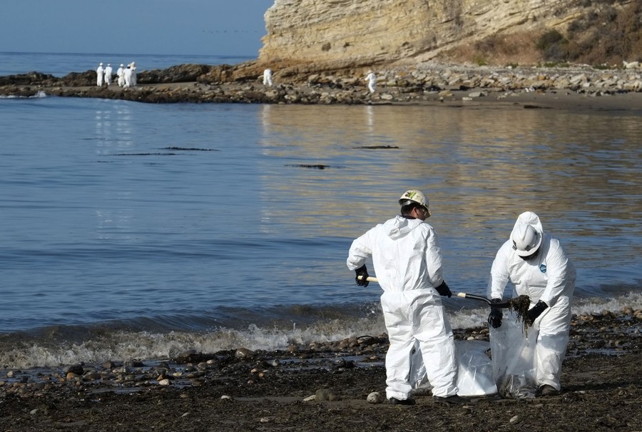 An oil pipeline burst yesterday, spilling an estimated 21,000 gallons (79,500 liters) of crude oil into the Pacific Ocean near Santa Barbara, California. The oil slick spread at least four miles along Refugio State Beach by sunset, as emergency response and cleanup crews converged on the scene. The pipeline was secured hours after the discovery of the spill, according to the U.S. Coast Guard.
