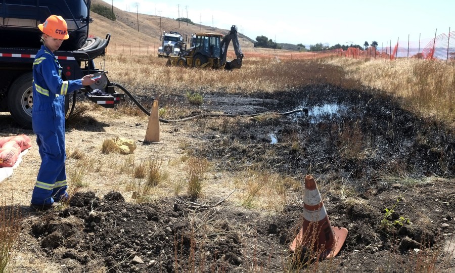 Read moreKristen Karnes, an air monitor with the Center for Toxicology and Environmental Health, takes readings at the site of an underground oil pipeline break near Refugio State Beach on May 20, 2015. #