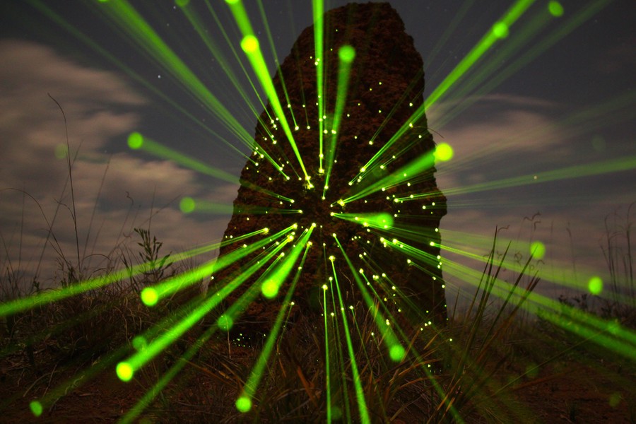 Read moreThis photo was taken in the Brazilian Cerrado of the amazing bioluminescent termite mounds glowing in the dark. The phenomenon is the result of firefly larvae nesting in the holes to attract the winged termites coming out of the nest. I played with the zoom and focus to create this intergalactic effect of which resembles a landscape on a different planet. #
