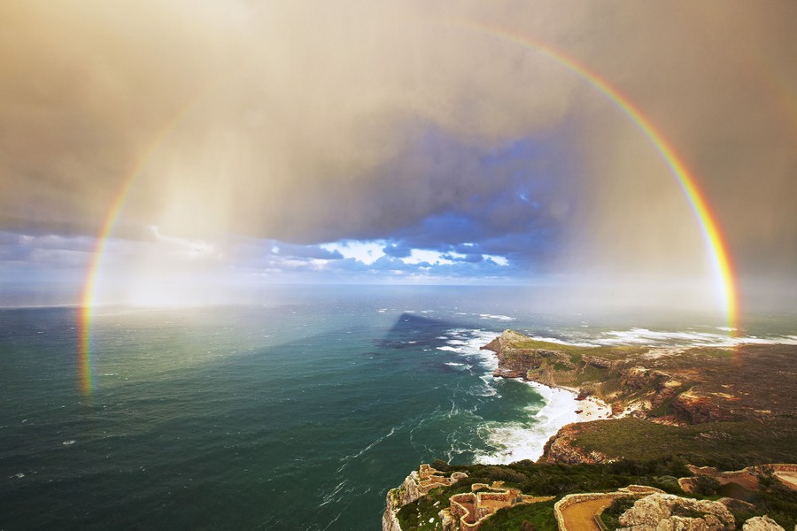 Read moreThe beauty of nature sometimes lasts for just few seconds. This rainbow gives me an impression of the geometrical half circle drawn from the center point of the shadow of the mountain. You can also see the rain at the far end. It was just a mesmerizing moment. Photographed at Cape Point, South Africa. #