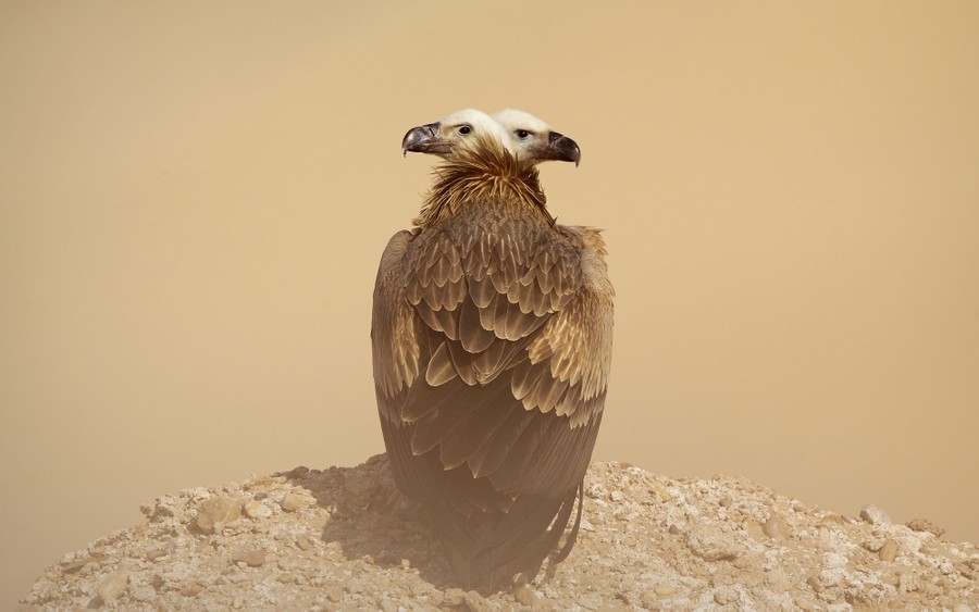 Read moreOn a windy day during raptor migration, hunters in Kuwait started to catch tired raptors. On this day my friend and I went to photograph some raptors and we saw these two tired vultures, so we started to drag them away from the hunters until they reached a good hidden place, to keep them safe until they started a new journey. In this photo I saw the vultures land between sand dunes, so I decided to hide behind these dunes to get a close shot, and then I saw this beautiful pose. #