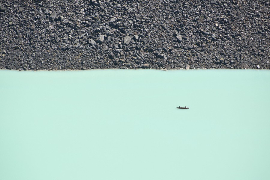 Read moreThis disorienting photo was taken from a cliff overlooking Lake Louise in Banff national park. The two people are enjoying a canoe ride on Lake Louise's turquoise waters. #