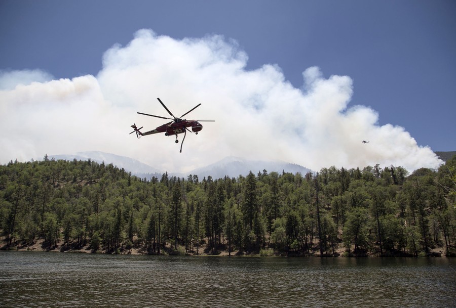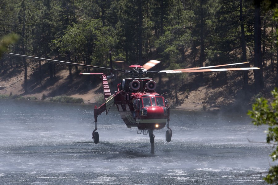 Read moreA firefighting helicopter fills up with water from Jenks Lake as firefighters battle the Lake Fire in the San Bernardino National Forest in California on June 19, 2015. #