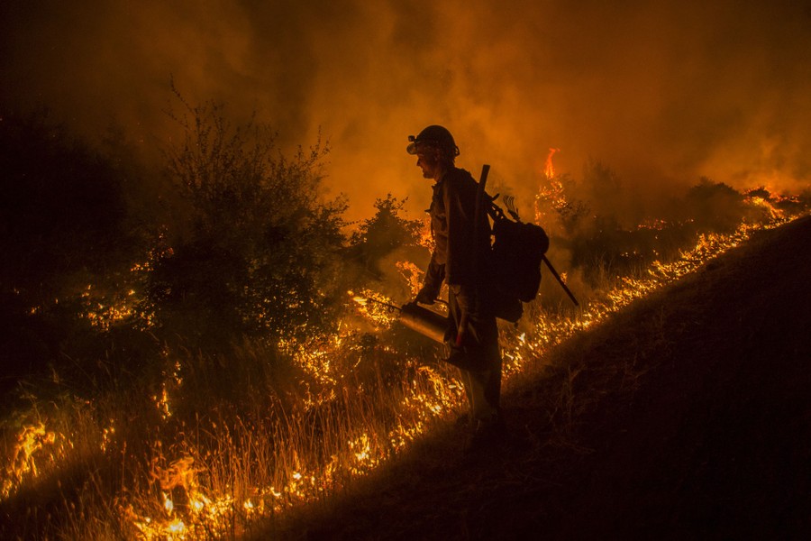 Read moreA firefighter from the Plumas Hotshots sets a backfire while battling the Saddle Fire in the Shasta-Trinity National Forest near Hyampom, California, on June 13, 2015. #