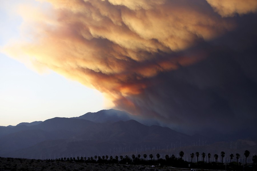 Read moreA smoke plume from the Lake Fire in the San Bernardino National Forest is seen at sunset, rising over the Coachella Valley from Palm Springs, California, on June 18, 2015. Some 500 firefighters backed by air tankers and bulldozers were battling the Lake Fire, which was raging across some 7,500 acres (3,000 hectares) and was just 5 percent contained, the San Bernardino County Fire Department said. #