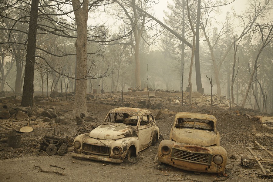 Read moreA pair of burned cars sit outside the remains of several homes destroyed by fire along California State Route 175 on September 13, 2015, near Middletown, California. #