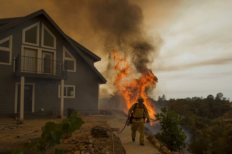 Over the weekend, thousands of people were evacuated as fast-burning wildfires in California overwhelmed several small towns, killing at least one person and destroying hundreds of homes and businesses. A state of emergency was declared by governor Jerry Brown in the areas hardest hit by the Butte and Valley fires. According to Cal Fire, the Valley Fire in southern Lake County has grown to 61,000 acres and is 5 percent contained, and the Butte Fire in Amador and Calaveras counties has reached 71,000 acres and is now 30 percent contained.