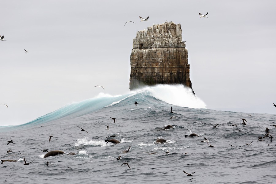 Read moreA large cluster of marine life enjoys a massive feeding frenzy below the monolithic Eddystone Rock. The area is about 26 kilometers off Tasmania's South East Cape and is truly a wild location. #