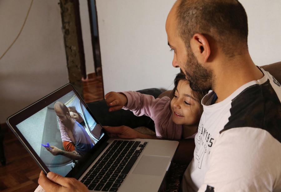 Read more#BuyPens refugee Abdul Halim al-Attar, from Syria, sits next his daughter Reem, 4, as they look at a photo on a laptop during an interview with the Associated Press in Beirut on November 28, 2015. The photograph of al-Attar carrying his sleeping daughter on his shoulder while trying to sell pens to passing motorists in the scorching heat went viral this past summer and touched people across the world. Al-Attar is now running three businesses and helping other refugees in the city after an online crowdfunding campaign in his name collected $191,000. #