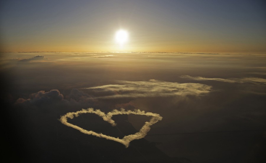 Read moreA giant heart hangs in the sky at sunset after skywriter Nathan Hammond wrote several days-worth of messages, relating to hope and love, over New Orleans, during the New Orleans Jazz & Heritage Festival, on May 2, 2015. #