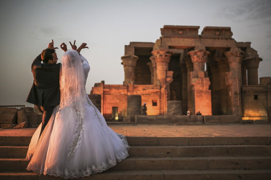 Read moreA newlywed couple spell the word “LOVE” with their hands during a wedding photo shoot at the ancient temple of Kom Ombo, north of Aswan, southern Egypt, on April 30, 2015. #