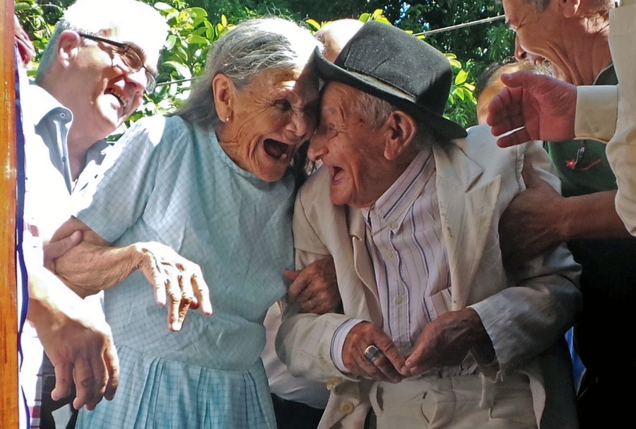 Read moreParaguayan Anacleto Escobar (right), veteran of the Chaco War (1932-1935) fought between Paraguay and Bolivia, and his wife Cayetana Roman, smile during a ceremony coinciding with his 100th birthday in which they received a house—the first in their lives as owners—as a gift for his merits, in Neembucu, Paraguay, on January 7, 2015. The event was organized by the governor of the state of Neembucu, Carlos Silva, to honor Escobar. #