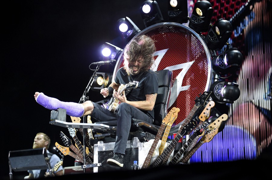 Read moreThe Foo Fighters' Dave Grohl performs on a throne of guitars at RFK Stadium on July 4, 2015, in Washington, D.C. Grohl had the throne built to allow him to continue performing after breaking his leg in a fall during an earlier concert in Sweden. #