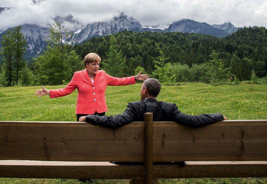 Read moreGerman chancellor Angela Merkel speaks with U.S. president Barack Obama at Schloss Elmau hotel near Garmisch-Partenkirchen, Germany, on June 8, 2015 during the G-7 summit. #