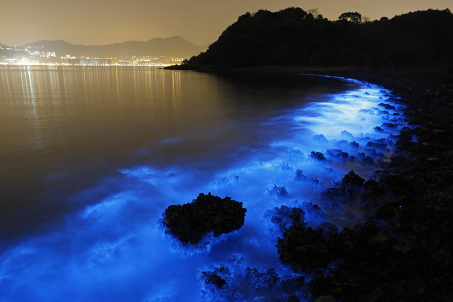 Read moreThis Thursday, January 22, 2015 photo made with a long exposure shows the glow from a Noctiluca scintillans algal bloom along the seashore in Hong Kong. The luminescence, also called sea sparkle, is triggered by farm pollution that can be devastating to marine life and local fisheries, according to University of Georgia oceanographer Samantha Joye. Noctiluca itself does not produce neurotoxins like other similar organisms do. But its role as both prey and predator tends can eventually magnify the accumulation of toxins in the food chain, according to R. Eugene Turner at Louisiana State University. #