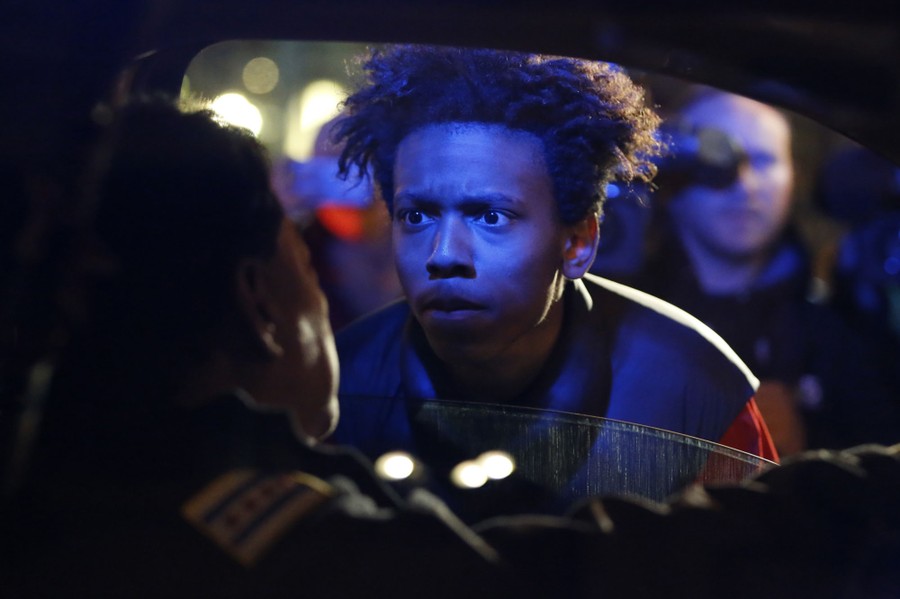 Read moreLamon Reccord, right, stares down a Chicago police officer as he and others march through Chicago's Loop on November 25, 2015, one day after murder charges were brought against police officer Jason Van Dyke in the killing of 17-year-old Laquan McDonald. #