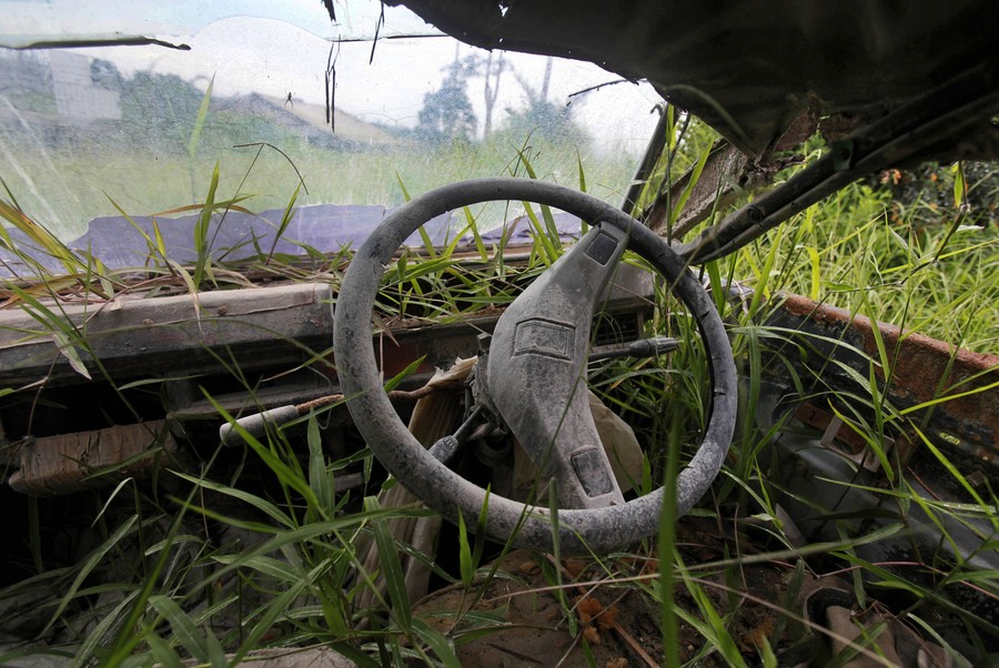 Indonesia’s Mount Sinabung sprang to life over the past few years, erupting and releasing destructive pyroclastic flows following 400 years of dormancy. Numerous villages that had been established on its slopes now sit completely empty—declared too dangerous to inhabit by Indonesian authorities. Associated Press photographer Binsar Bakkara recently visited the newly-formed ghost villages of Guru Kinayan, Simacem, Kuta Gugung, and Sibintun, documenting the crumbling houses and personal belongings left behind that serve as “eerie reminders of how life suddenly stopped when the volcano erupted and everyone was forced to evacuate their homes.”