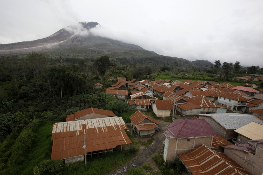 Read moreMount Sinabung looms above the abandoned village of Sukanalu in North Sumatra, Indonesia, on November 16, 2015. The village is one of several declared too dangerous to inhabit, forcing residents to abandon their homes. #