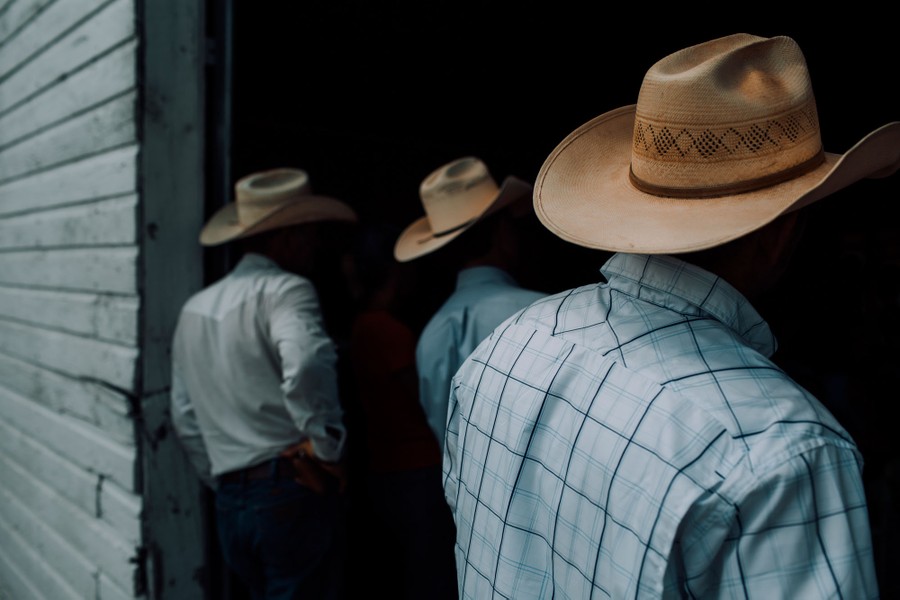 Read moreTaking a morning off from harvest, three farmers in their Sunday’s best stand in the threshold of the barn for a sermon at Cowboy Church in New Raymer, Colorado. #