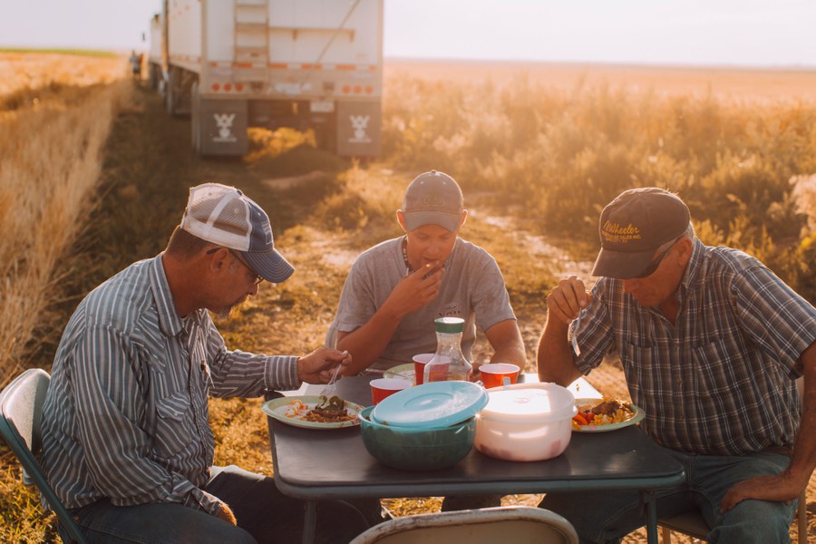 Read moreThe second day of harvest is cut short by a supercell blowing in from the West. Colton prays that the rain will stray to the South as his wife Lauren looks on and their niece Carlee twirls in her own rain dance. #
