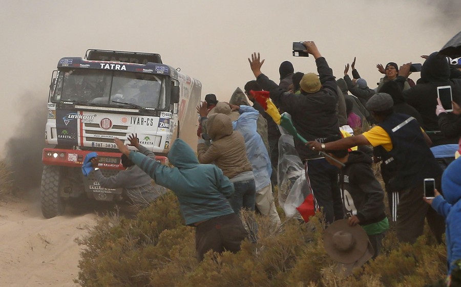 Read moreTrata truck drivers by Martin Kolomy, David Kilian and Rene Kilian, of Kazakhstan, race in the fifth stage between the cities of Jujuy, Argentina and Uyuni, Bolivia, on January 7, 2016. #