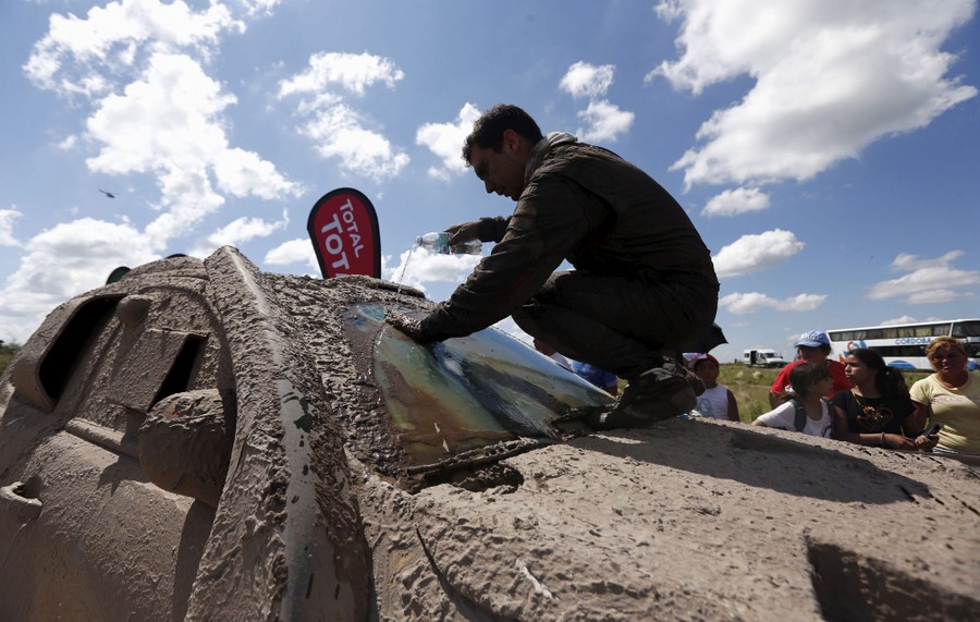 Read moreRicardo Torlaschi, co-pilot of Xavier Pons of Spain, cleans his windshield at the end of the second stage of Dakar 2016 in Cordoba province, Argentina, on January 4, 2016. #