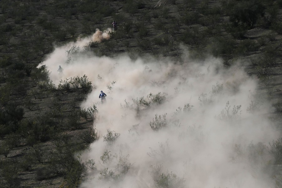 Read moreHonda rider Ricky Brabek, top, is followed by Sherco TVS rider Juan Pedrero Garcia, center, and Yamaha rider Adrien Van Beveren, during the ninth stage of Dakar 2016 in Belen, Argentina, on January 12, 2016. #