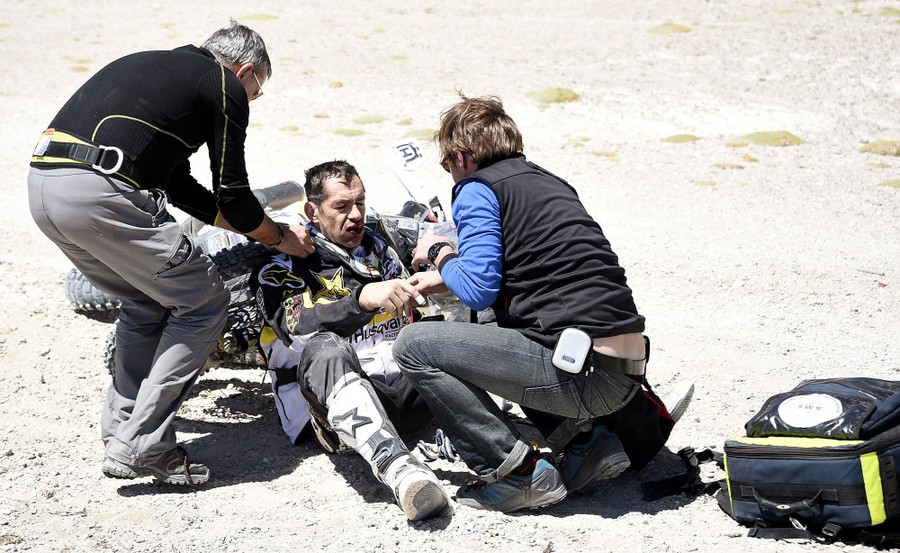 Read morePortugal’s Paulo Goncalves of Honda Team HRC, warms his hands with the exhaust of his bike, before the start of the sixth stage in Uyuni, Bolivia, on January 8, 2016. #