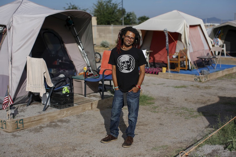 Read moreMatt Mercer, a one-time resident of Camp Hope, poses among tents in Las Cruces, New Mexico, on October 6, 2015. “The most unique thing about the camp is the sense of the community,” said Mercer, a former tent city dweller who now volunteers at Camp Hope. “When you are in the shelter system you don't see community, people are all just in survival mode.” #