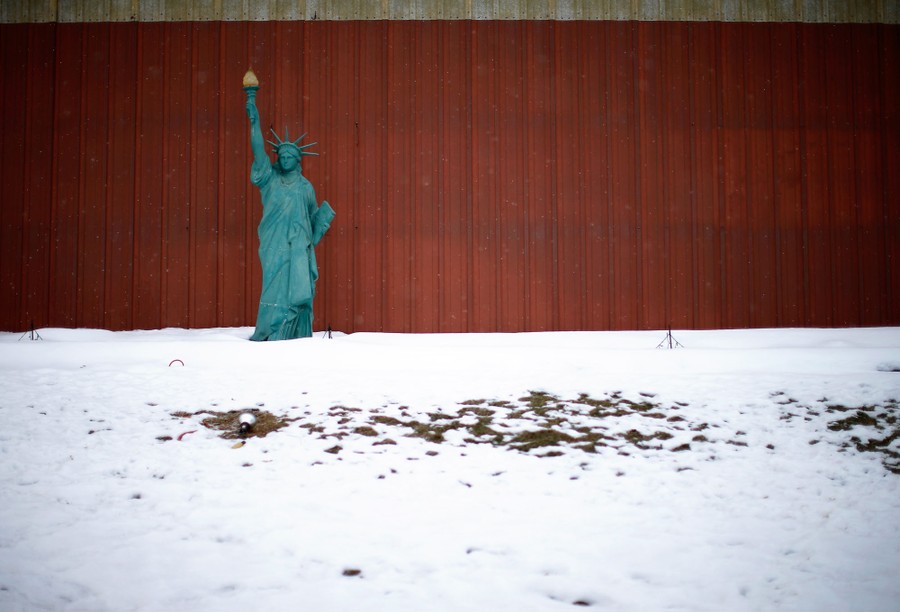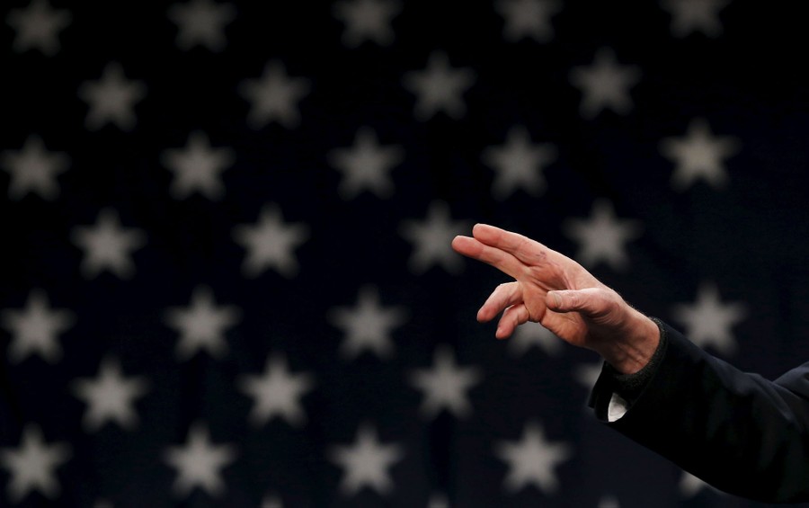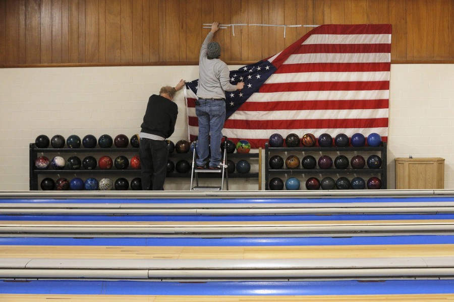 Read moreWorkers take down a U.S. flag following a campaign stop by U.S. Democratic presidential candidate Hillary Clinton at the Family Fun Center in Adel, Iowa, on January 27, 2016. #