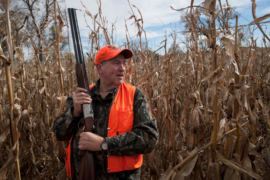 Read moreRepublican presidential candidate Mike Huckabee walks through a field of corn while participating in the Colonel Bud Day Pheasant Hunt hosted by Congressman Steve King outside of Akron, Iowa, on November 1, 2015. #