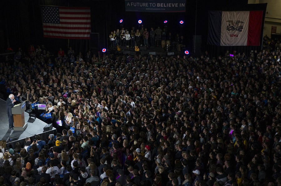 Today, the Iowa Caucus takes place, the first major event of the presidential election process for 2016. Candidates have spent months (some of them years) visiting potential voters across the state, speaking in gymnasiums, cornfields, coffee shops, bingo halls, and church basements, posing for selfies, taking questions, then moving on to the next town. Gathered here are scenes from the past few frantic months as presidential hopefuls made appearances in every corner of the state.