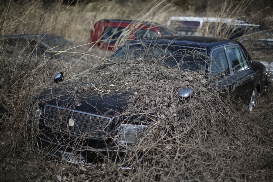 Read moreThe passing of five years shows in a parking lot, as vegetation and the elements begin to take their toll on vehicles, homes, and businesses inside the deserted exclusion zone close to the Fukushima Daiichi Nuclear Power Plant on February 26, 2016 in Tomioka, Fukushima, Japan. #