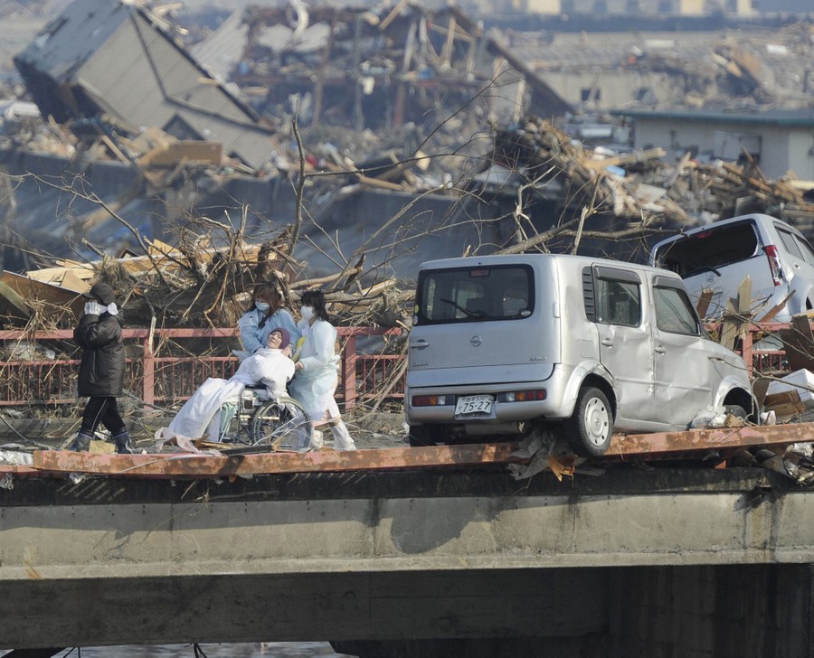Read moreThis picture taken by a Sendai city official, Hiroshi Kawahara on March 11, 2011, shows muddy tsunami water swallowing vehicles and houses at a bridge in Sendai city in Miyagi Prefecture. #