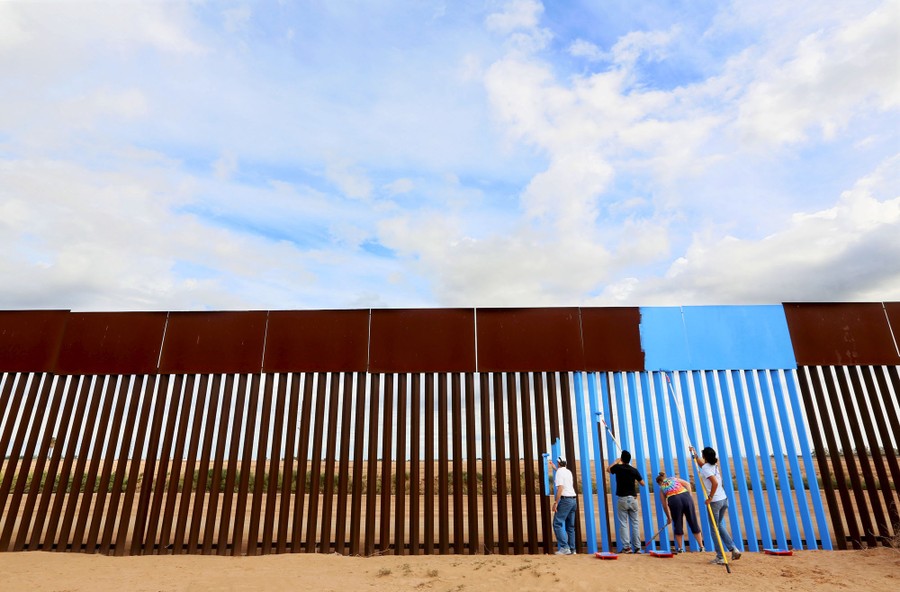 The Borrando la Frontera, or Erasing the Border, project took place on April 9 in Baja California, Sonora, and Ciudad Juarez, as members of the cultural organization Border/Arte “removed” parts of the U.S.-Mexico border fence in three places by painting large sections sky blue, allowing the fence to visually blend into the background. The artist Ana Teresa Fernández says the project is an effort to symbolically erase a long-standing physical barrier that separates families and causes widespread misery.