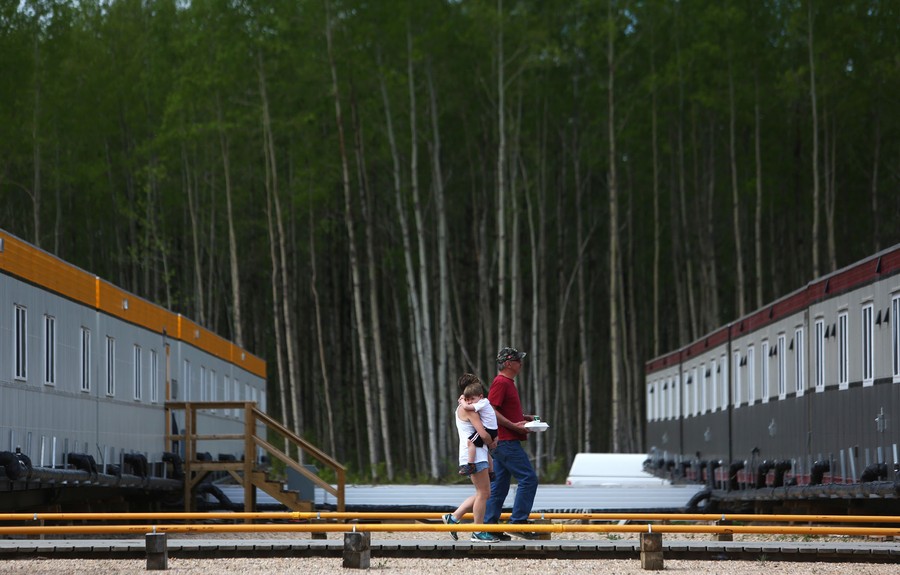 Read morePam Borges carries her son Max, 4, between portable homes at Canada North Camp Wandering River Lodge in Wandering River, Alberta, on May 7, 2016. The camp, currently home to nearly 400 people, is a refuge for many fleeing the forest fires near Fort McMurray. #