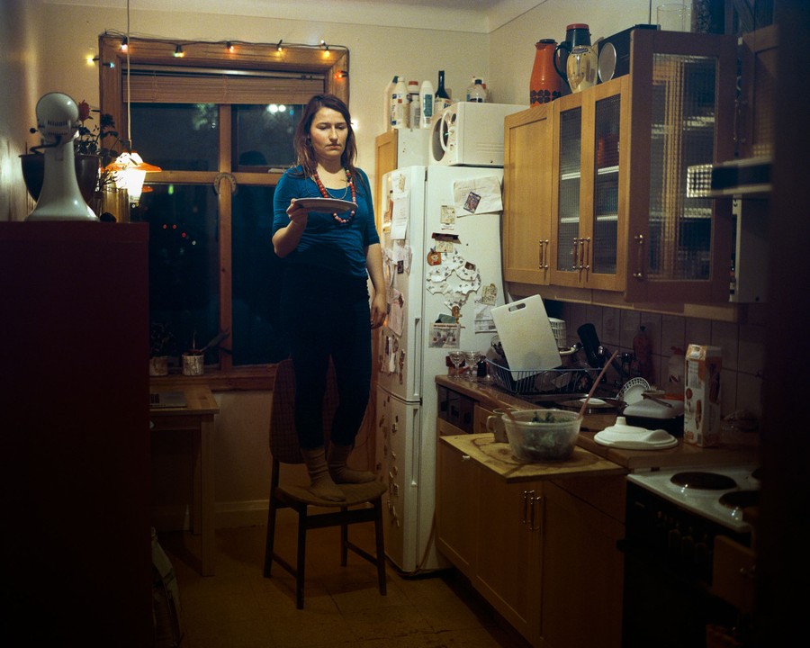 Read moreKatrín, 36, warms up a plate of food for herself after putting the children to bed. She is a kindergarten teacher and student while she raises two children—seven and four years old. #