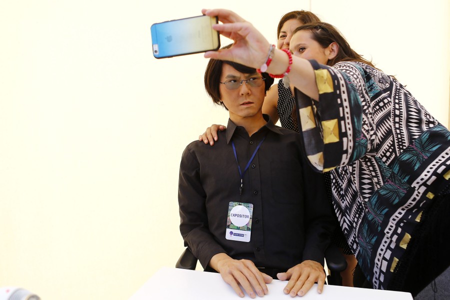 Read moreA visitor takes a selfie beside a Geminoid HI-2 robot, which is made in likeness of its creator, the Japanese professor Hiroshi Ishiguro (not pictured), during the opening ceremony of the Congress of the Future event in Santiago, Chile, on January 19, 2016. #