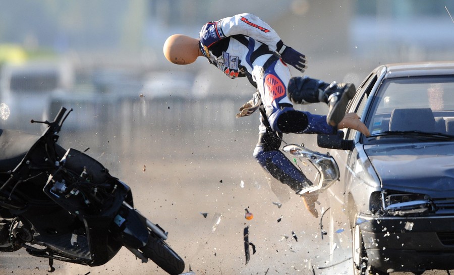 Read moreA car driving at 70 kph hits a dummy on a scooter in Le Mans, France, on October 15, 2015, during a crash test organized to raise awareness among high school students of the risks of road accidents. #