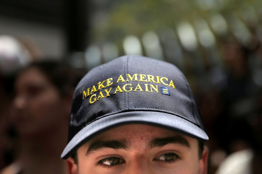 Read moreA man wears a hat that says “Make America Gay Again,” a parody of Donald Trump's campaign slogan, while watching the San Francisco LGBT Pride Parade in San Francisco, California, June 26, 2016. #