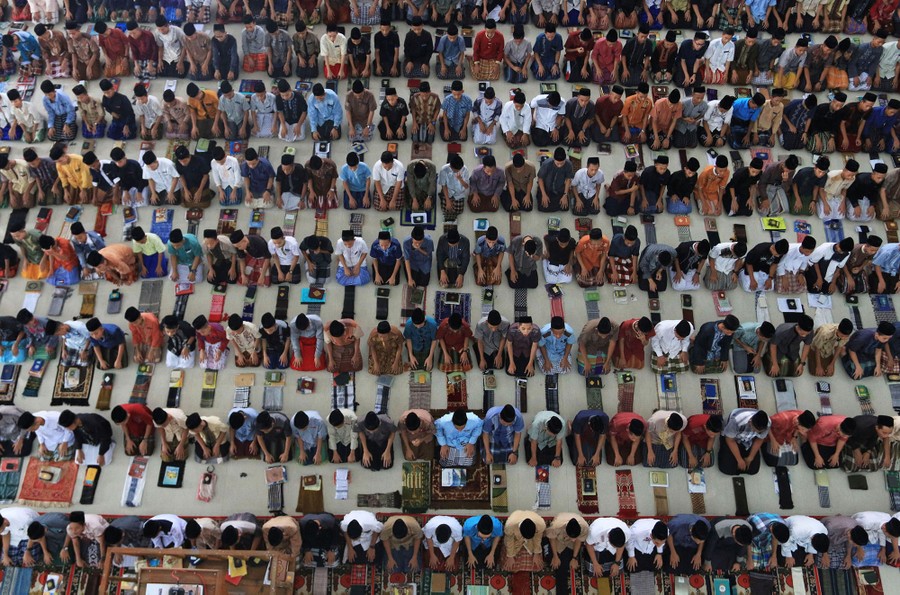 Ramadan, the Islamic month of fasting, began earlier this week, with the observation of the Hilal, or new moon. Throughout this ninth month on the Islamic calendar, devout Muslims must abstain from food, drink, and sex from dawn until sunset. The fast, one of the five pillars of Islam, is seen as a time for spiritual reflection, prayers, and charity. After sunset, Muslims traditionally break the fast by eating three dates, performing the Maghrib prayer, and sitting down to Iftar, the main evening meal, where communities and families gather together. Gathered here are images of Muslims around the world observing Ramadan this year.