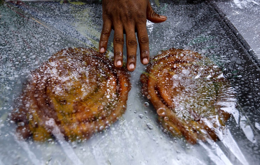 Read moreA Bangladeshi vendor covers food items with a plastic sheet to save it from a rain while Muslim devotees break their fast on the first day of Ramadan in Dhaka, Bangladesh, on June 7, 2016. #