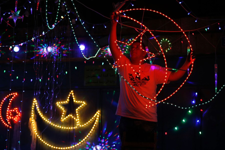 Read moreA Palestinian man decorates his shop with fairy lights in the old city of Jerusalem on June 3, 2016, as Muslims around the world prepared for the announcement of the fasting month of Ramadan. #