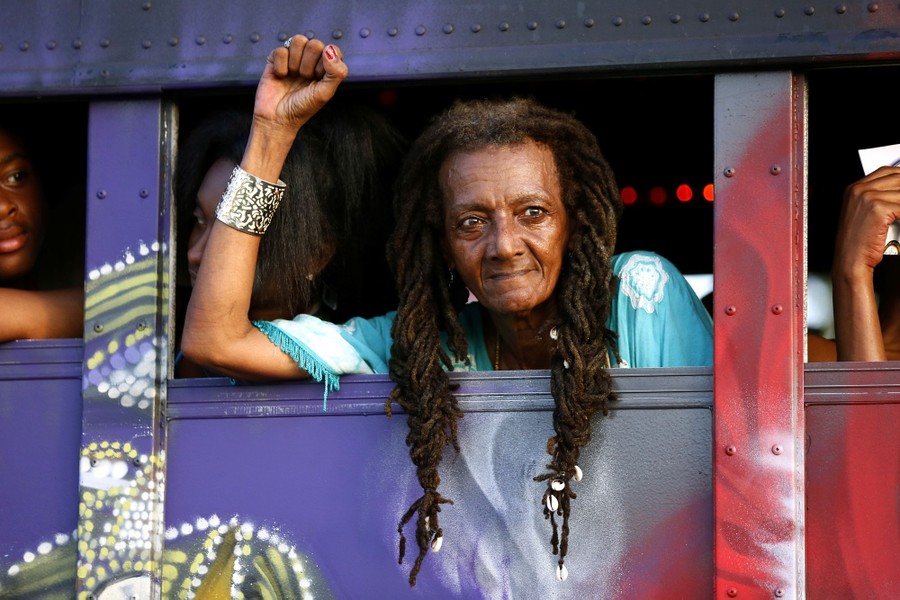 Read moreA woman chants out of the window of a bus as a group of protesters demonstrate near a prayer vigil in memory of Alton Sterling, who was shot dead by police, in Baton Rouge, Louisiana, July 7, 2016. #