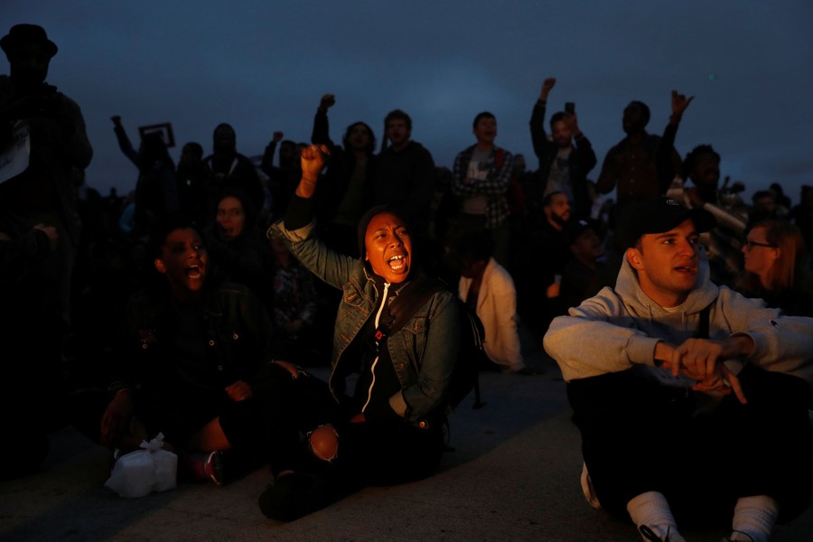 Read moreDemonstrators sit on Highway 880 during a protest against the police shootings that lead to two deaths in Louisiana and Minnesota, respectively, in Oakland, California, July 7, 2016. #