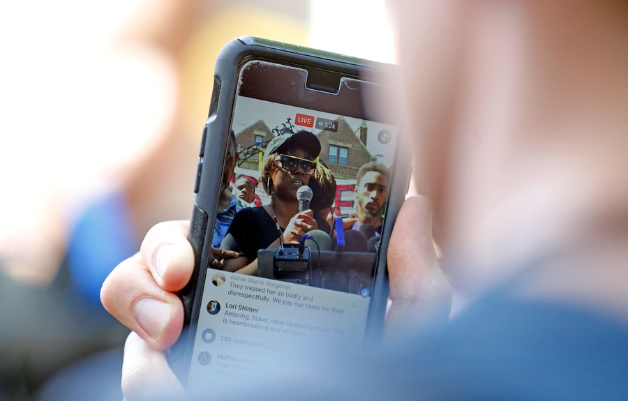 Read moreDiamond Reynolds is recorded on a cell phone as she recounts the incidents that led to the fatal shooting of her boyfriend Philando Castile by Minneapolis area police during a traffic stop on Wednesday, at a "Black Lives Matter" demonstration, in front of the Governor's Mansion in St. Paul, Minnesota, July 7, 2016. #