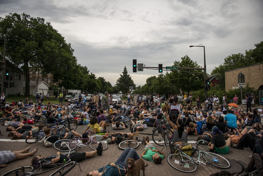 Read moreProtestors lie in an intersection during a demonstration for Philando Castile, July 7, 2016, in St. Paul, Minnesota. Castile was shot and killed the previous night by a police officer in Falcon Heights, MN. #