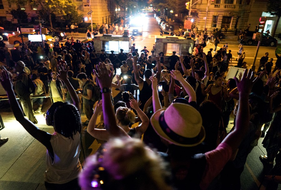 Read morePolice watch activists gather in front of The Metropolitan Museum of Art as they march up 5th Ave. in response to the recent fatal shootings of two black men by police, July 7, 2016, on the Upper East Side of Manhattan in New York City. Protests and public outcry have grown in the days following the deaths of Alton Sterling, July 5, 2016, in Baton Rouge, Louisiana and Philando Castile, July 6, 2016, in Falcon Heights, Minnesota. #